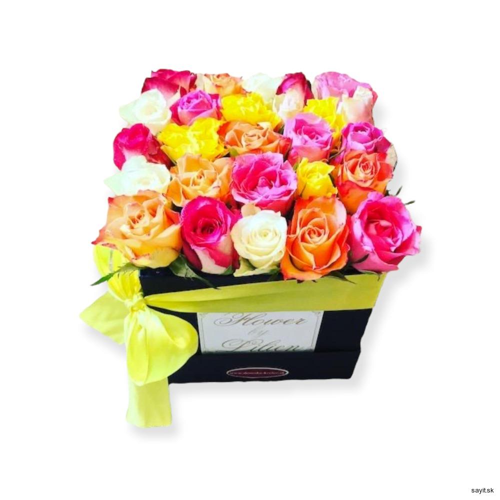 Kvety majú skutočný význam lásky. Preto darujte milovanej osobe luxusný box s krásnymi farebnými ružičkami, previazaný veľkou mašľou. Ružičky v plnom rozkvete pôsobia veľkolepo, no svojím vzhľadom si zachovávajú status skromnosti. Ak chcete pôsobiť jemne a pritom originálne, box plný ruží je pre Vás ten pravý.