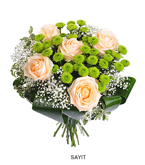 Kvety - básne prírody. Neobyčajná ale krásna súhra ruží krémovej farby, maličkých zelenkavých chryzantém a nenápadnej zelene nemôže dopadnúť zle. Darujte milovanej osobe originálnu kytičku v milej veľkosti a nechajte kvety hovoriť za Vás.