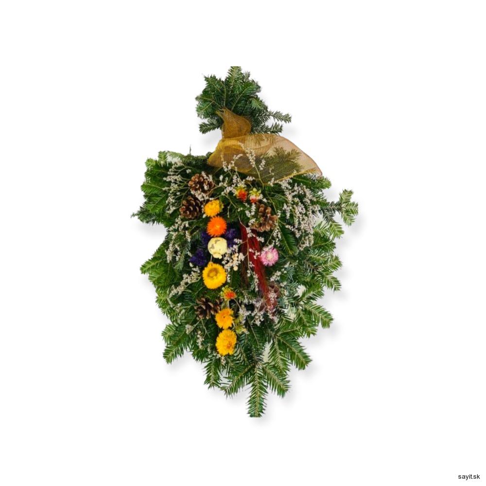 Kytica zo živej čačiny doplnená o slamienkové dekorácie a prírodný materiál.