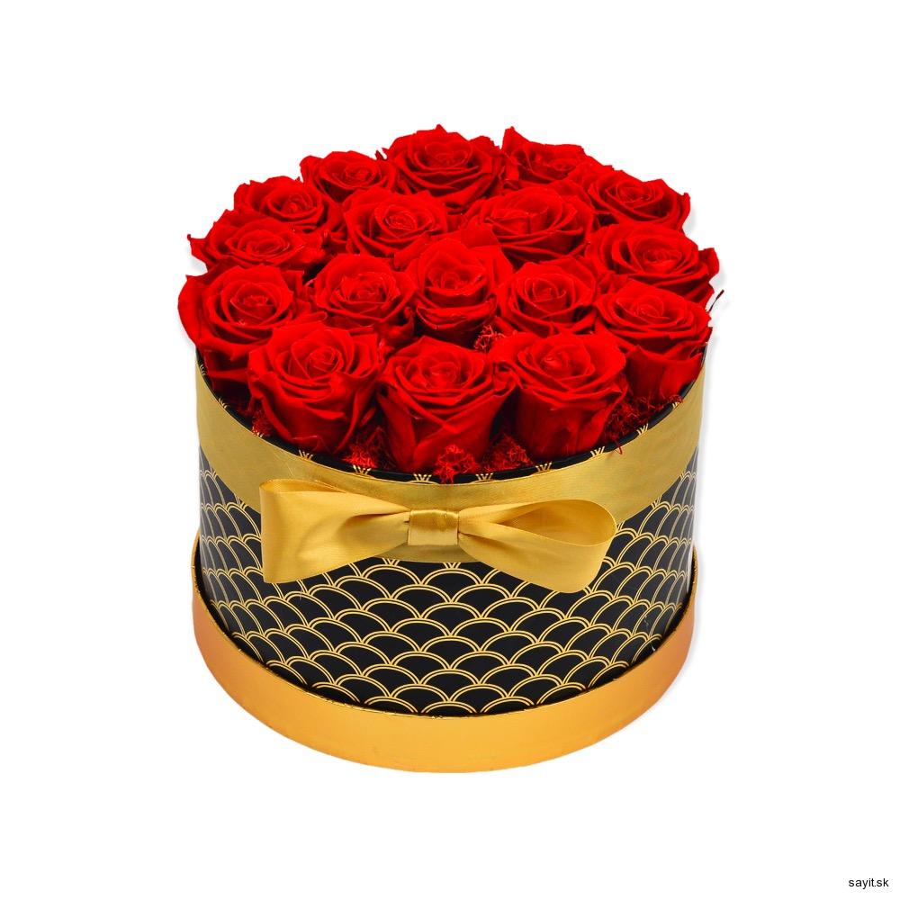Trvácne červené ruže v zlatočiernom boxeSkladom129,90 €/ ks