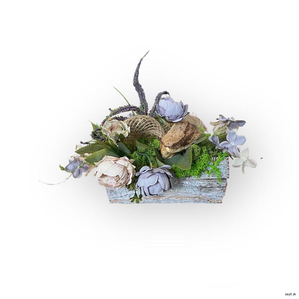 Aranžmán v drevenom kvetináči Rustic blue
