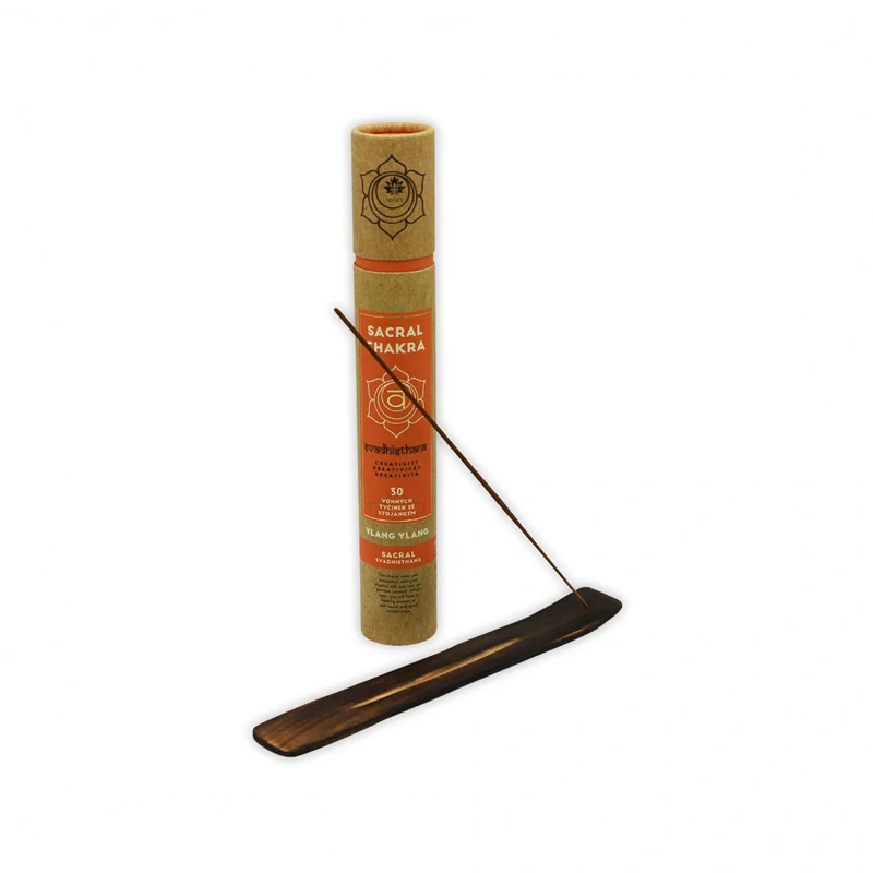 Tlejúca vonná tyčinka s omamnou vôňou čerstvých kvetov tropického stromu Ylang Ylang vytvára jedinečnú atmosféru ideálnu na meditáciu a relaxáciu. Táto vôňa pomáha stimulovať sakrálnu čakru, ktorá sa nachádza na chrbtici a podporuje energiu v panvovej oblasti a jej orgánoch. Zároveň harmonizuje prúdenie všetkých tekutín v tele.