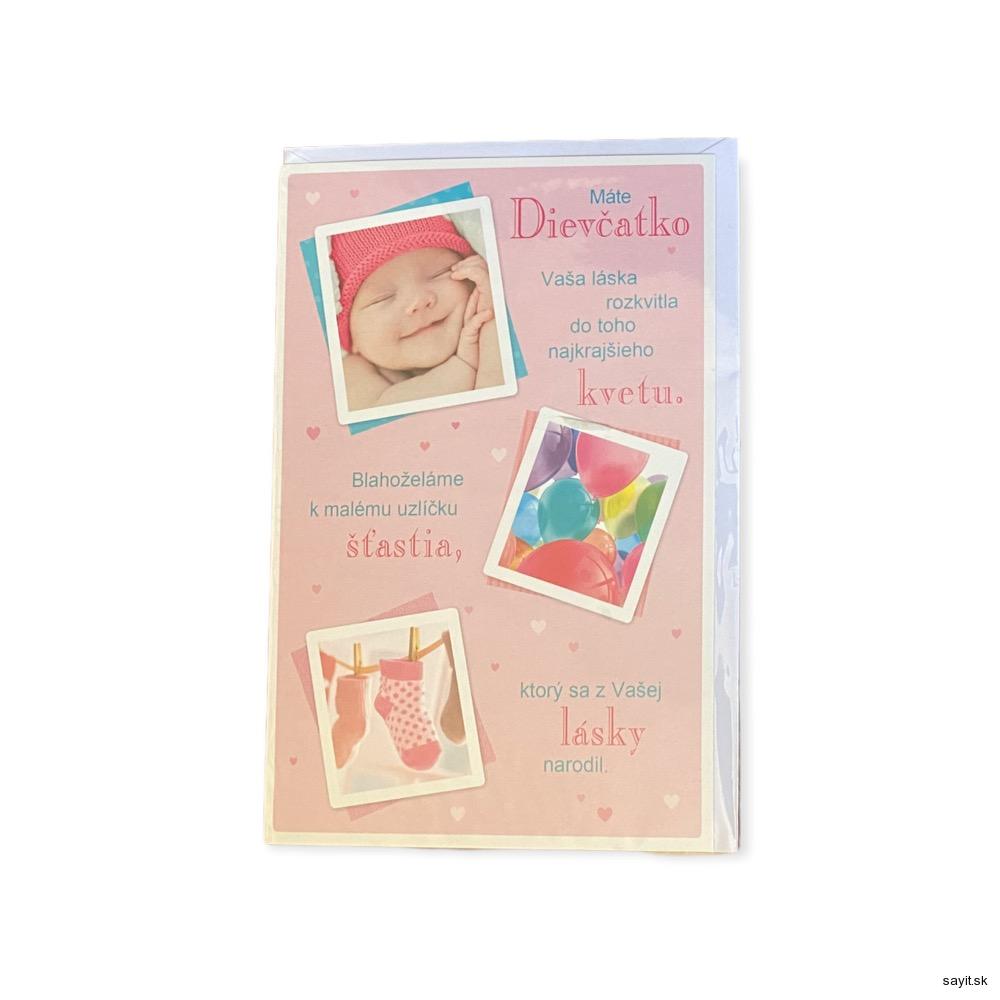 Papierové blahoželanie k narodeniu dieťaťa. V obálke a vnútri s textom. Možnosť dopísania vlastného textu.    celý popis