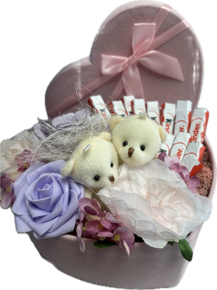 Kinder sladký box s medvedíkmi je rozkošný darček plný sladkého prekvapenia, ktorý poteší deti aj dospelých. Jemne ladený box obsahuje obľúbené čokoládky Kinder, roztomilých plyšových medvedíkov, dekoratívne kvety a elegantné doplnky, ktoré spolu vytvárajú harmonický a láskavý dar.