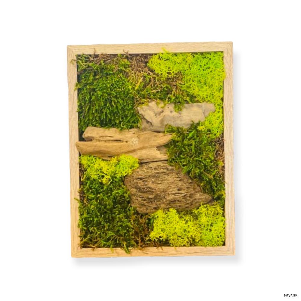 Machový obraz z preparovaného machu doplnený o dekorácie je ideálna voľba na darček.