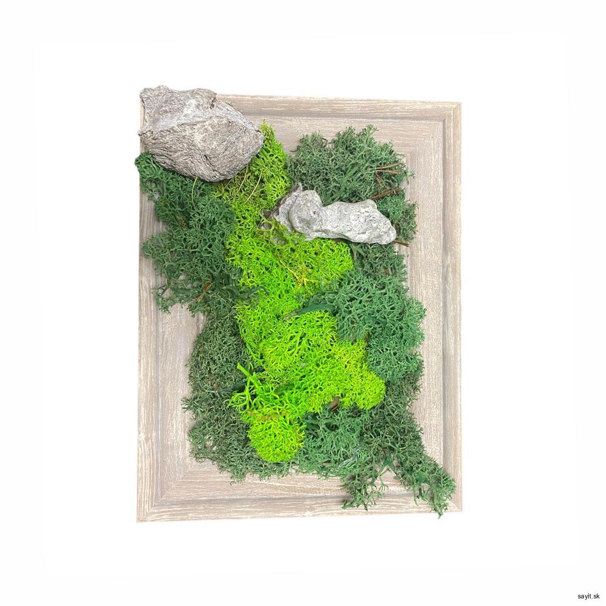 Tento machový obraz je vytvorený z dvoch odtieňov machu - sýto zelenej až žiarivej farby. Ich kombinácia vytvára kontrast a vizuálny efekt, ktorý pritiahne pozornosť.