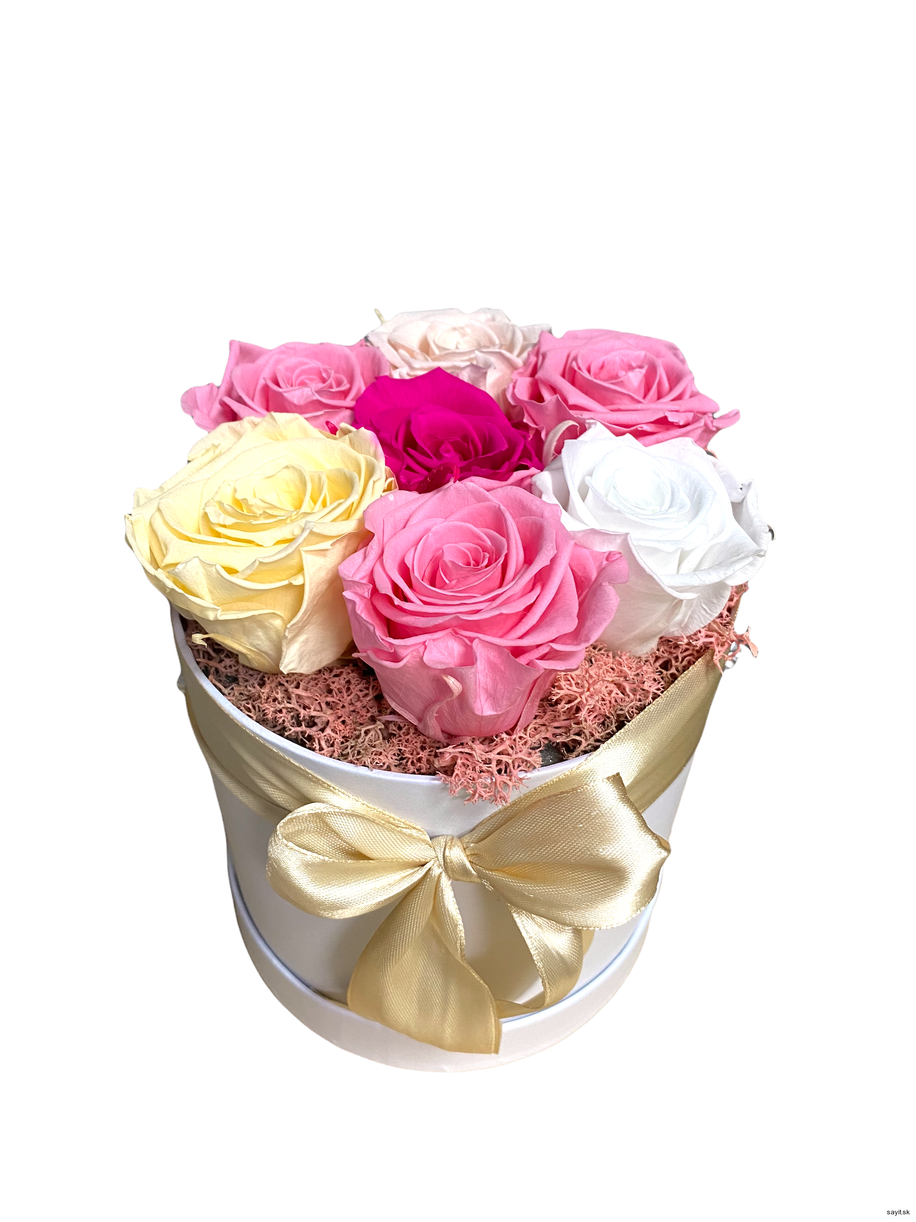 Všetko čo žena potrebujete k životu je láska a box ruží. Ak hľadáte niečo špeciálne pre špeciálnu osobu, tento luxusný box s pastelovými ružami je správnou voľbou! Box zdobí nápis "Z lásky". Milovanej osobe robí dlhodobú spoločnosť a taktiež radosť.
