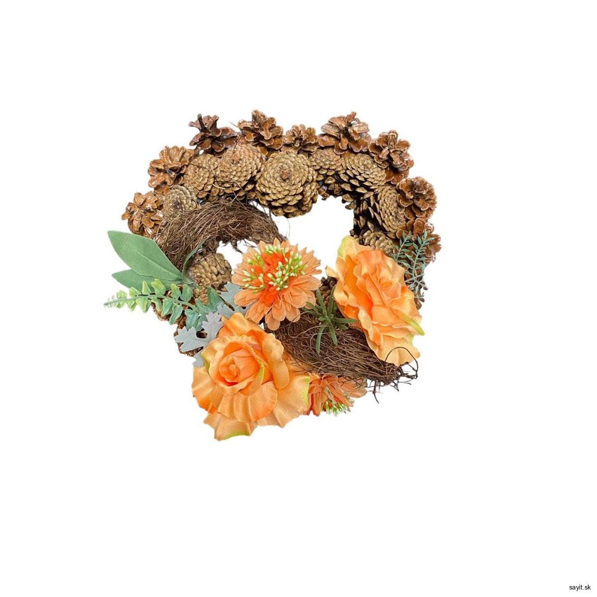 Šiškový venček v tvare srdca oranžový