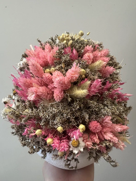 Sušený slamienkový aranžmán ružový